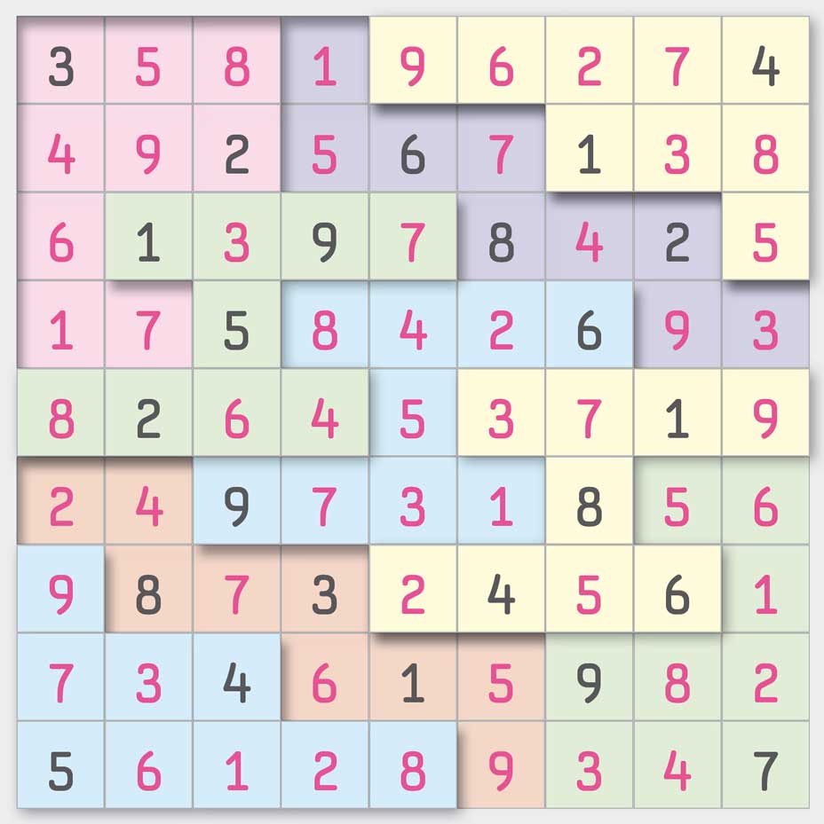 - Jede Zahl von 1 bis 9 in jeder Spalte genau einmal vorkommt.